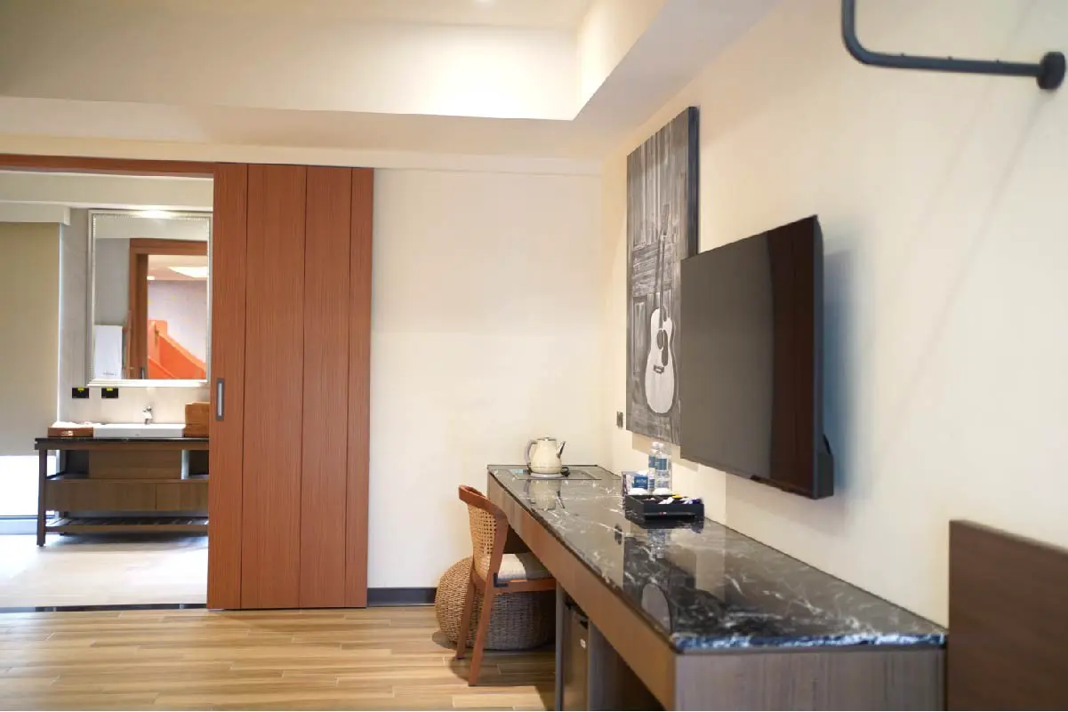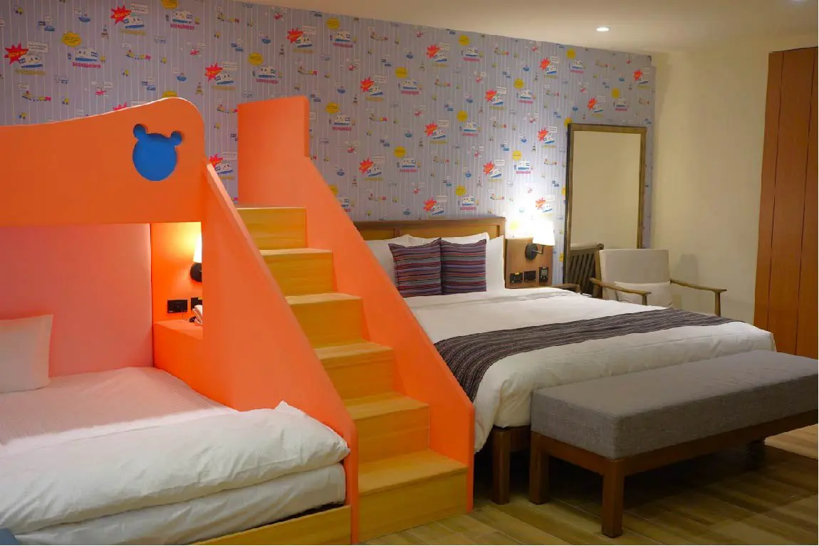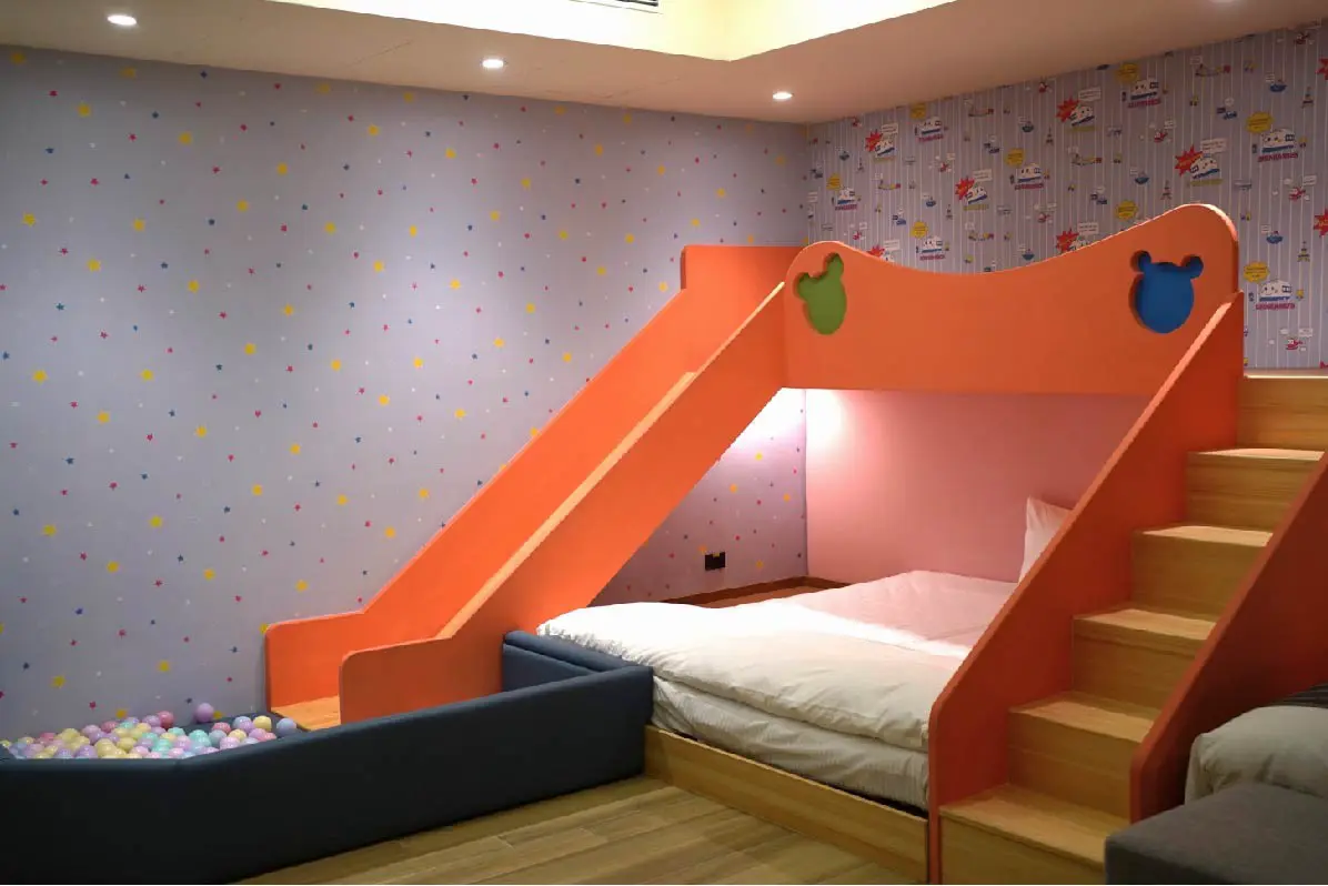 專為親子打造的夢幻空間,在綠意環繞的環境中,專屬於愛與陪伴的空間,擁有舒適床舖及專屬溜滑梯與球池,讓孩子在房內就能盡情玩樂、自在探索,家人能真正放鬆。柔和燈光與寬敞空間營造溫馨氛圍,這裡沒有擁擠的城市喧囂,只有微風穿梭樹梢的聲音,讓全家沉浸在童趣與歡笑中,創造美好回憶。