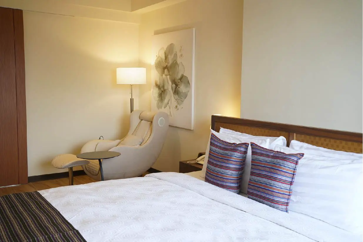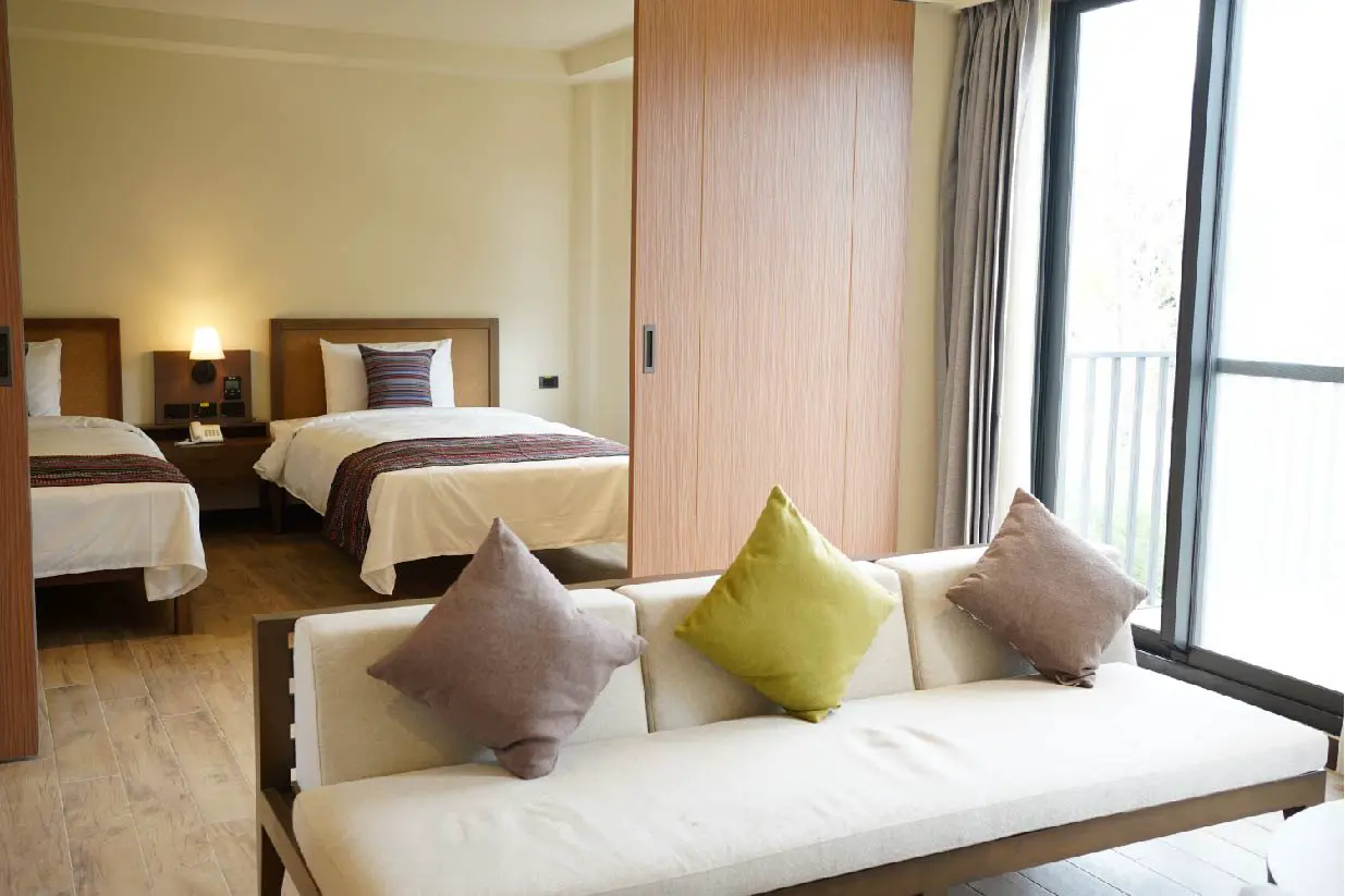 舒適寬敞的套房,搭配高級寢具、按摩椅、景觀浴缸,以純淨與簡約的設計,打造出舒適且富有溫度的休憩空間,這裡沒有繁雜,只有剛剛好的舒適與溫度,讓柔軟的床擁抱疲憊,讓窗外的綠意撫平心緒,讓旅人不僅擁有自在的私人空間,還能在悠然的氛圍中,共度一段無憂的美好時刻。